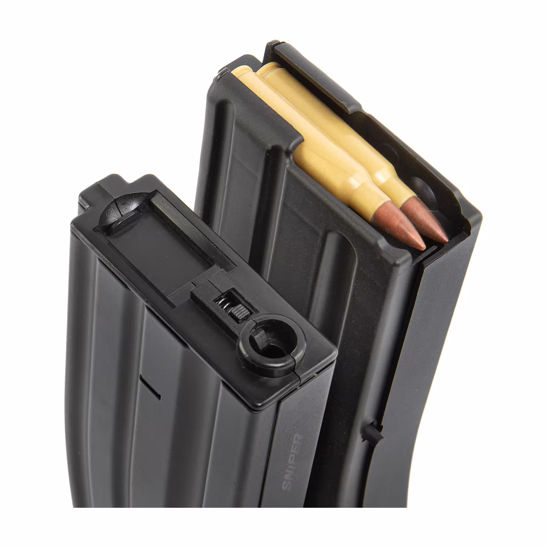 Double Mag Capacity: Two Hi-Cap mags joined for 800R or 1200R total capacity.